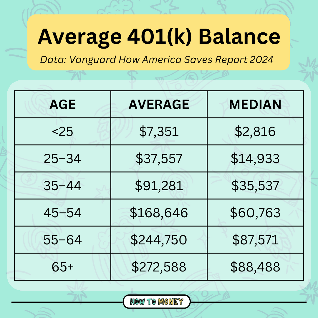 Average 401k balance: 👆👆👆 Remember averages are skewed by outliers (either very large or very small accounts), so a better metric is really the median balance.