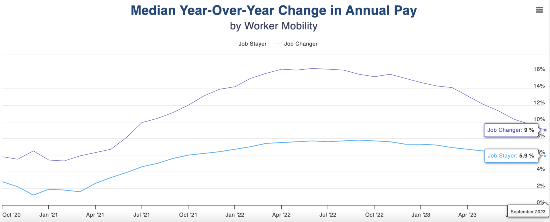 It compares increases in pay for people who stay in the same job vs. people who switch jobs. 👇👇👇