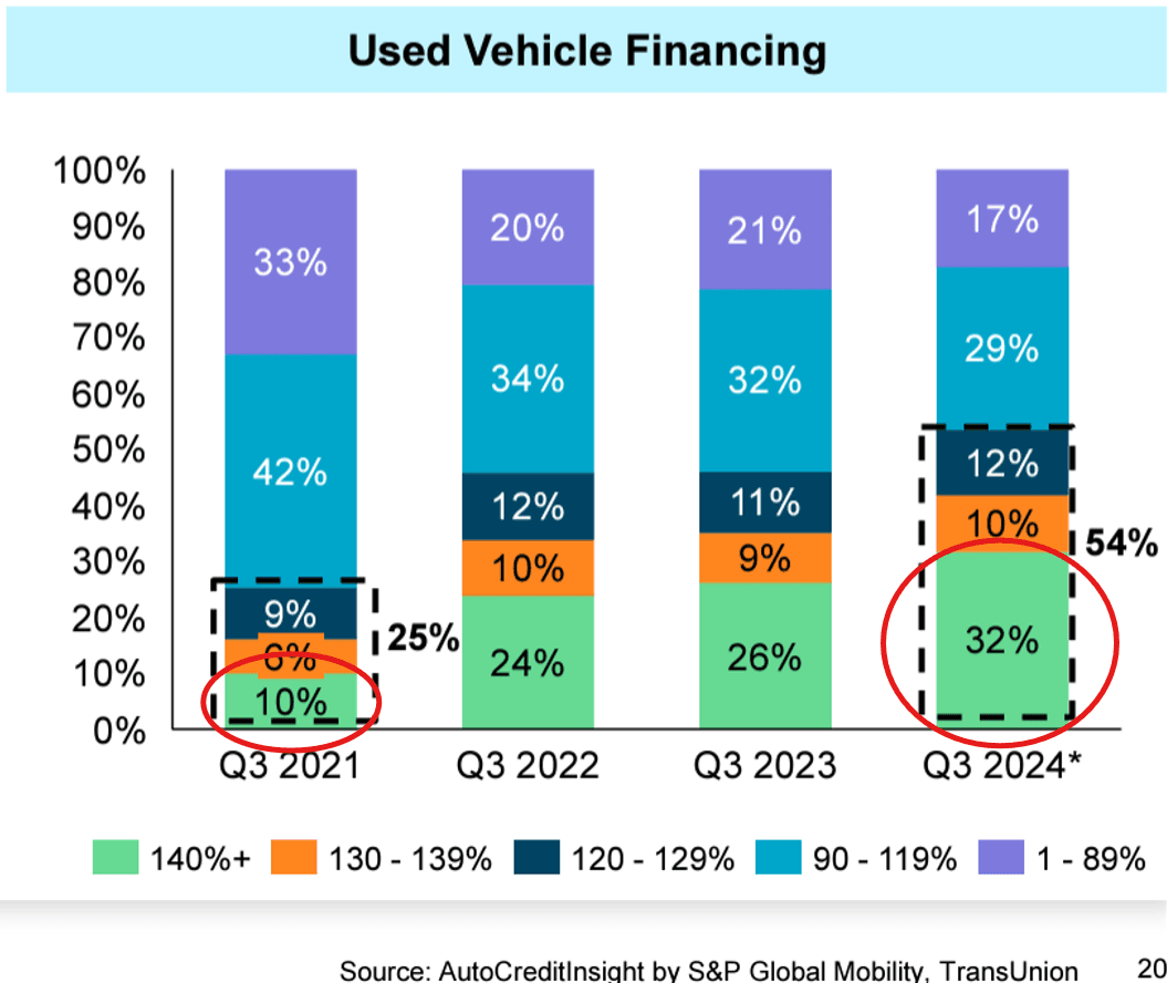 More than half of all used car loans (54%) exceed a loan-to-value (LTV) ratio of 120%!