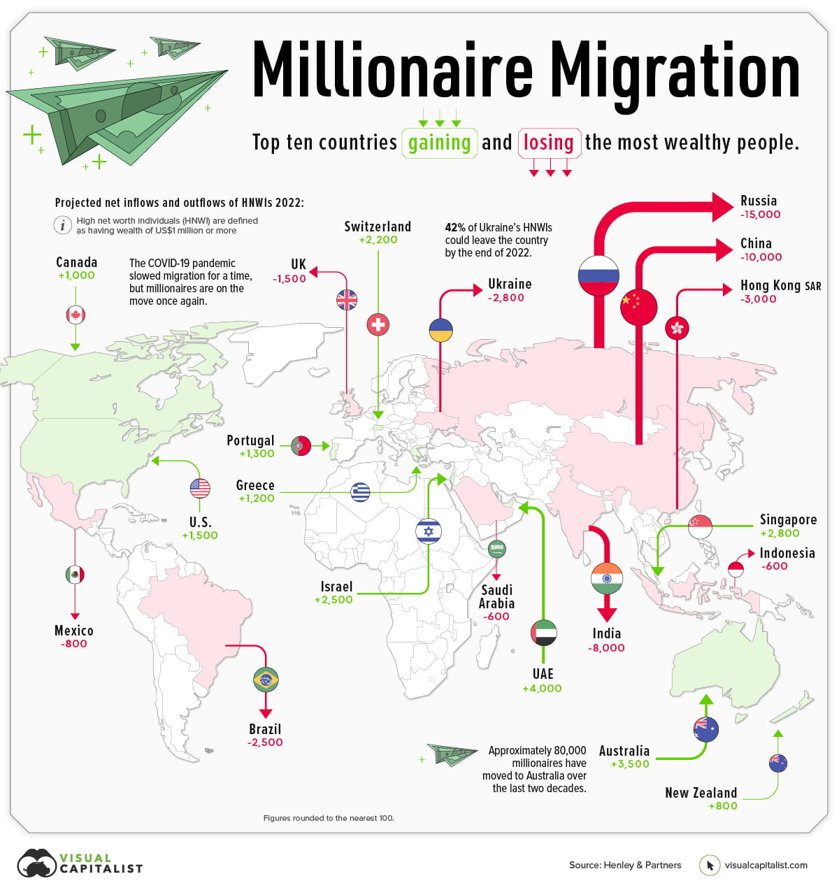 A super interesting Henley Global Citizens Report projects that 88,000 millionaires will move countries this year. Where are the moving to and from? 👇👇👇