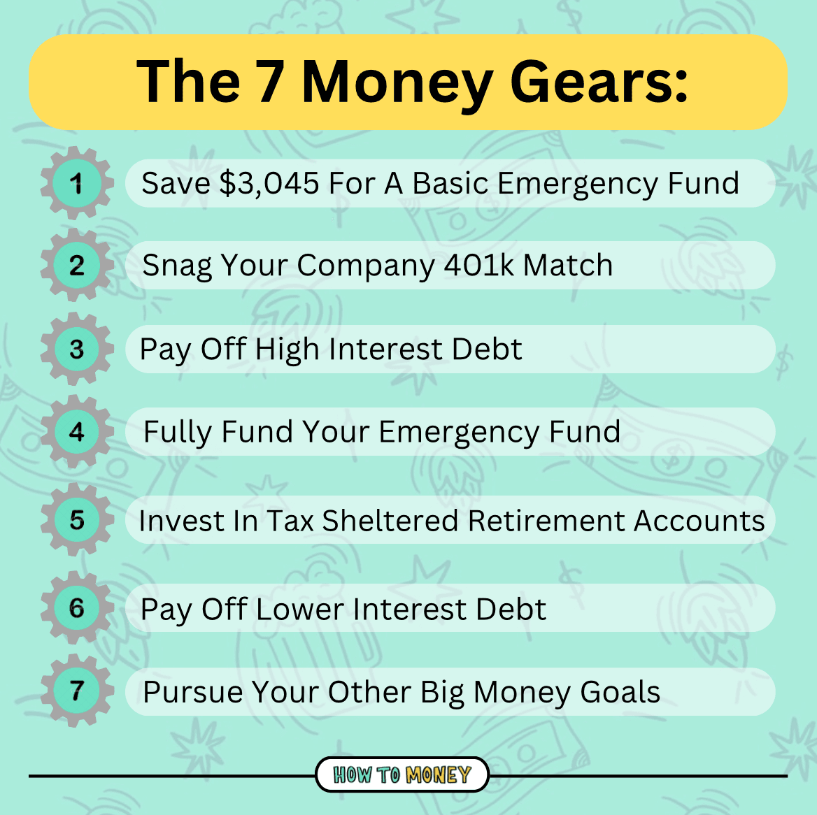 Start by listening to our episode on the 7 Money Gears. This is helpful if you’re not sure what stage of the personal-finance journey you are on. Mile markers are helpful when you’re on a road trip. The same is true with your personal finances.